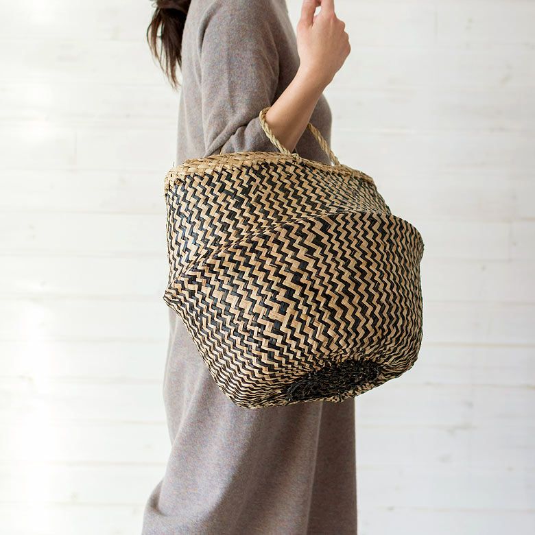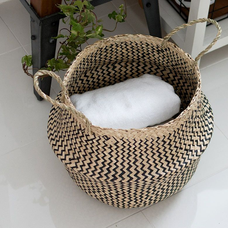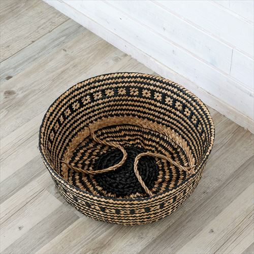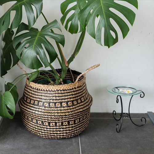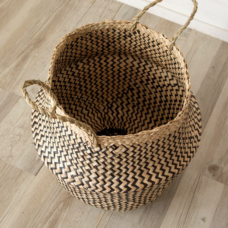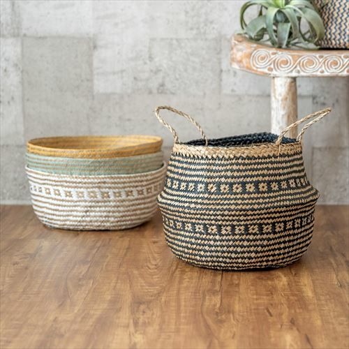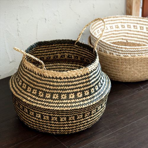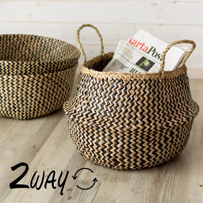 かごバスケット 収納 プランターカバー インスタ映え かご バスケット 収納 シーグラス製 折り畳み 2ウェイ[vk51211]【 北欧 持ち手 ブラック シェブロン ヘリンボーン カゴ 籠 収納バスケット ランドリーバスケット 小物入れ ハンドル 深い 大きい おしゃれ 北欧 エスニック アジアン雑貨 】