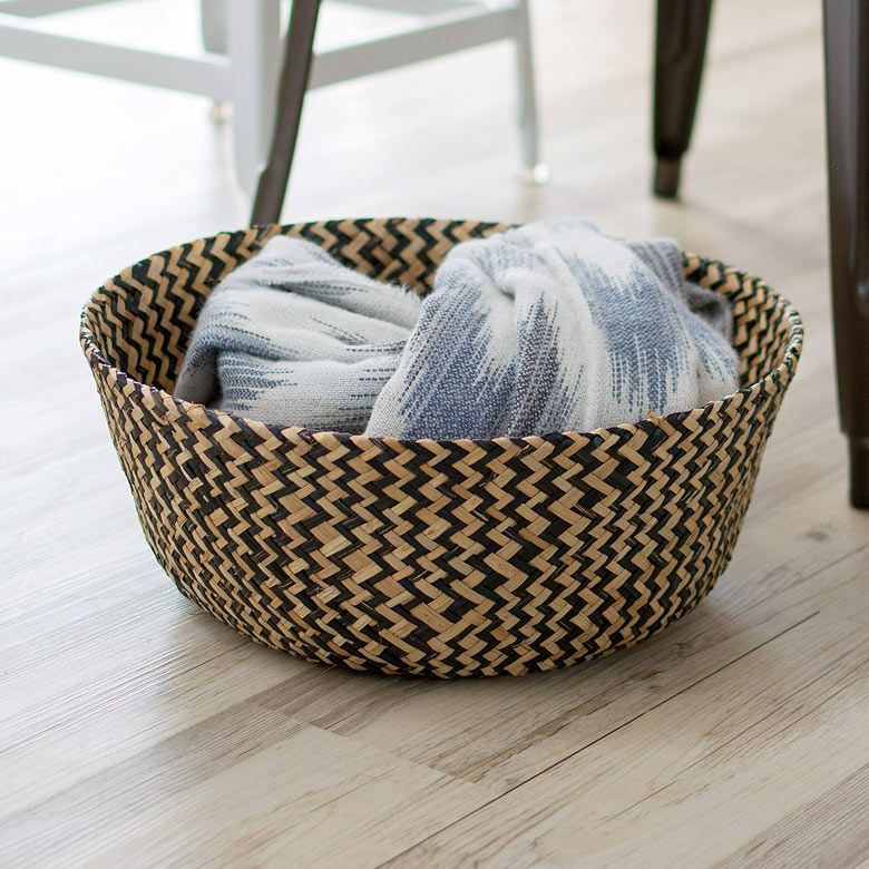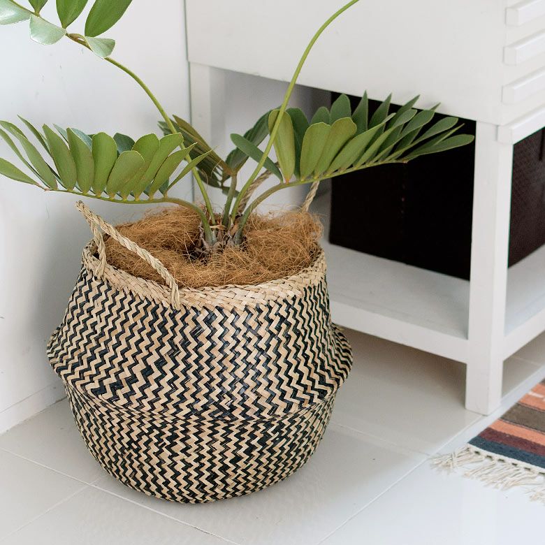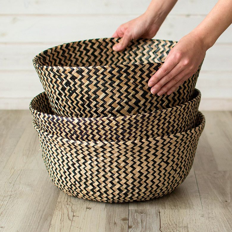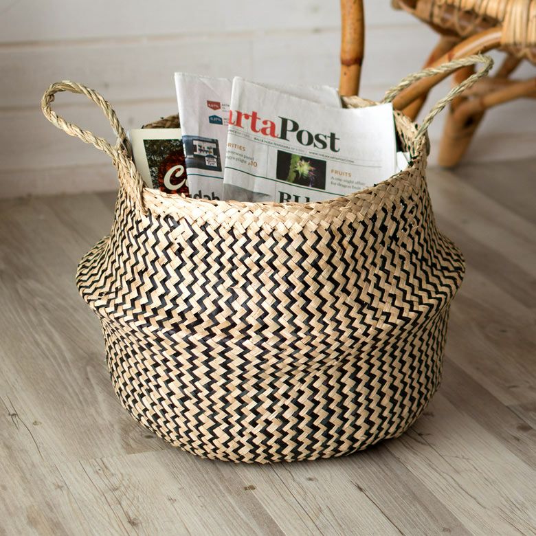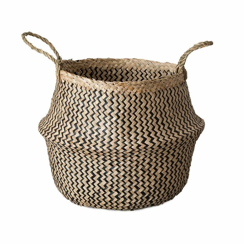 かごバスケット 収納 プランターカバー インスタ映え かご バスケット 収納 シーグラス製 折り畳み 2ウェイ[vk51211]【 北欧 持ち手 ブラック シェブロン ヘリンボーン カゴ 籠 収納バスケット ランドリーバスケット 小物入れ ハンドル 深い 大きい おしゃれ 北欧 エスニック アジアン雑貨 】