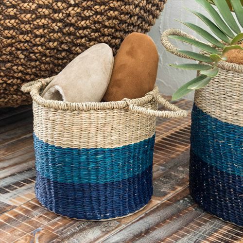 バリエーション豊富なシーグラス製かごバスケット。