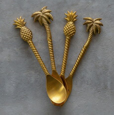 ガラスと真鍮のアクセサリースタンドケース 蚊取り線香入れ 蓮の花デザイン パームツリーデザインのフォーク