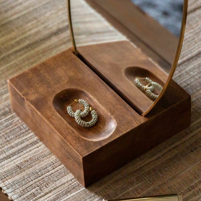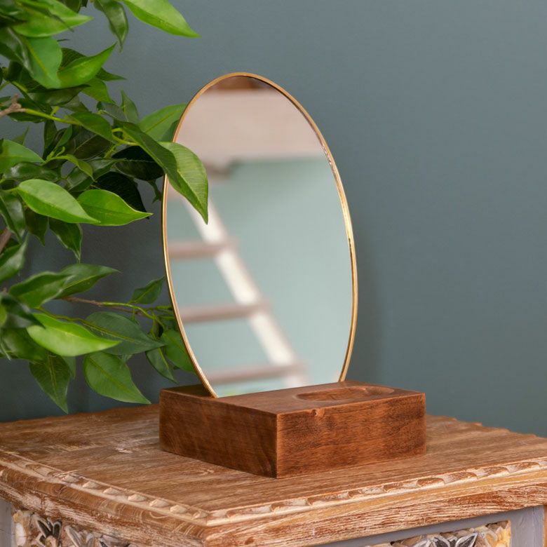 ![]() ウッドスタンド付き真鍮ミラー |