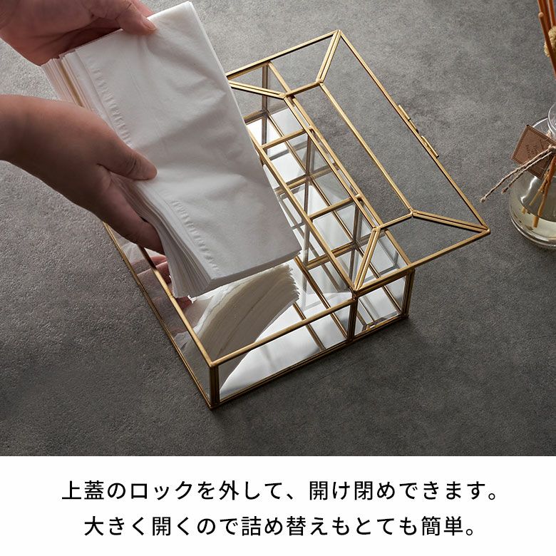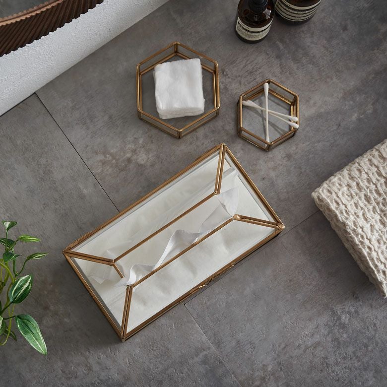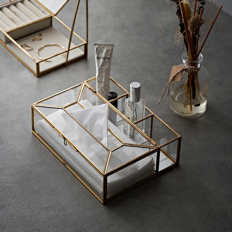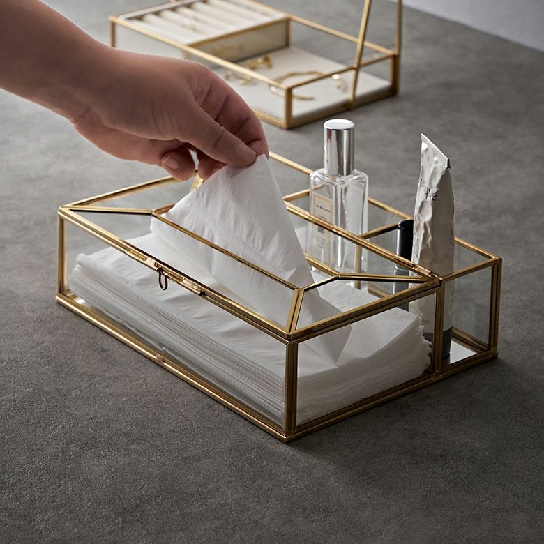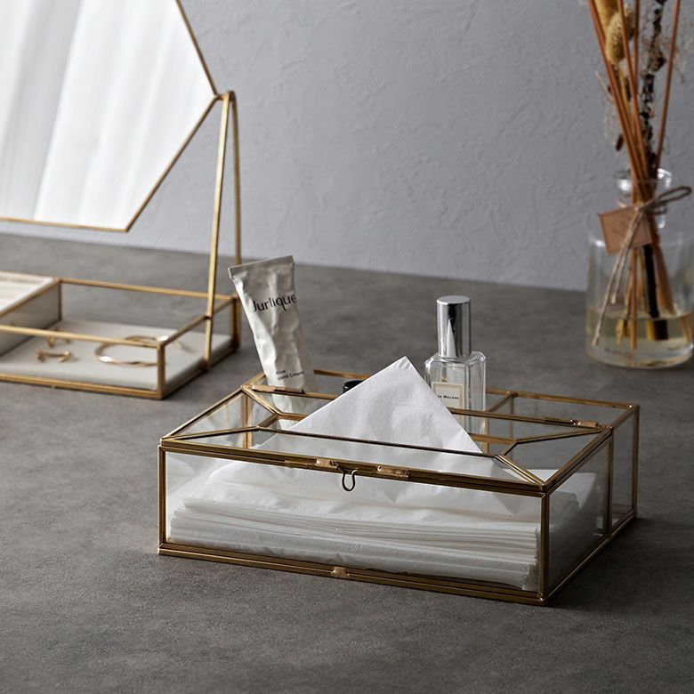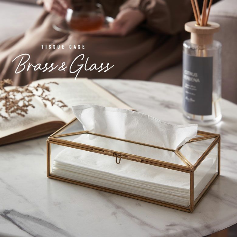 ![]() ガラスと真鍮の 仕切りつきティッシュケース |
