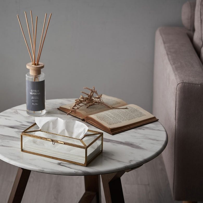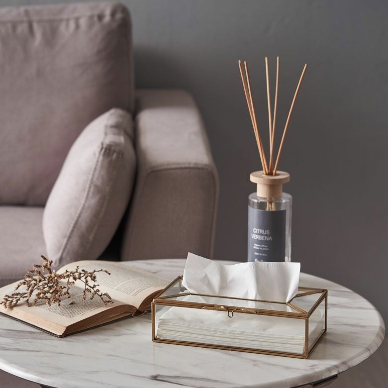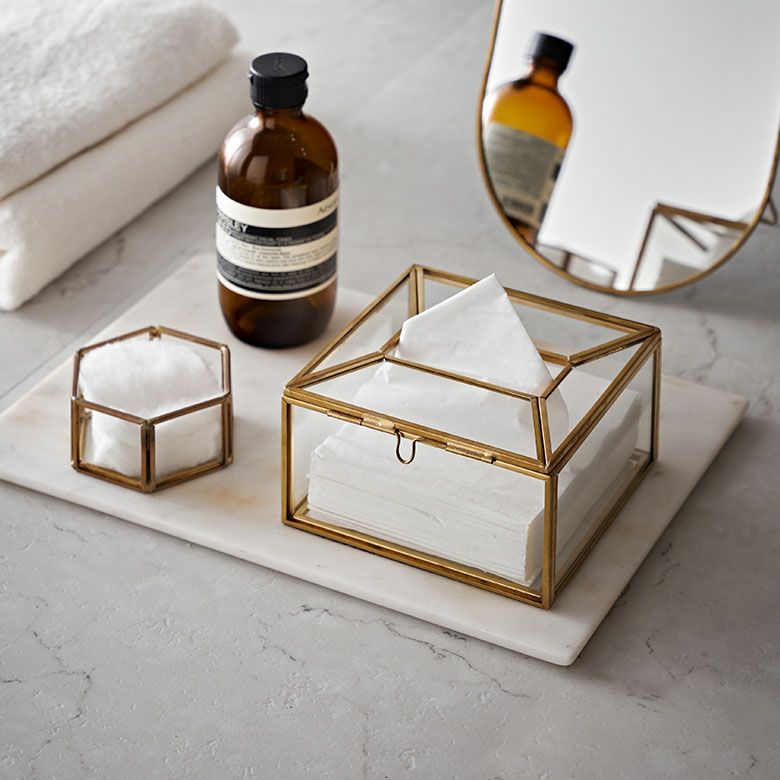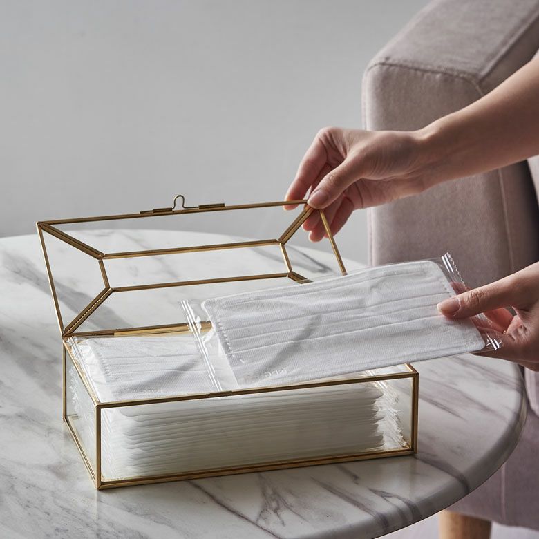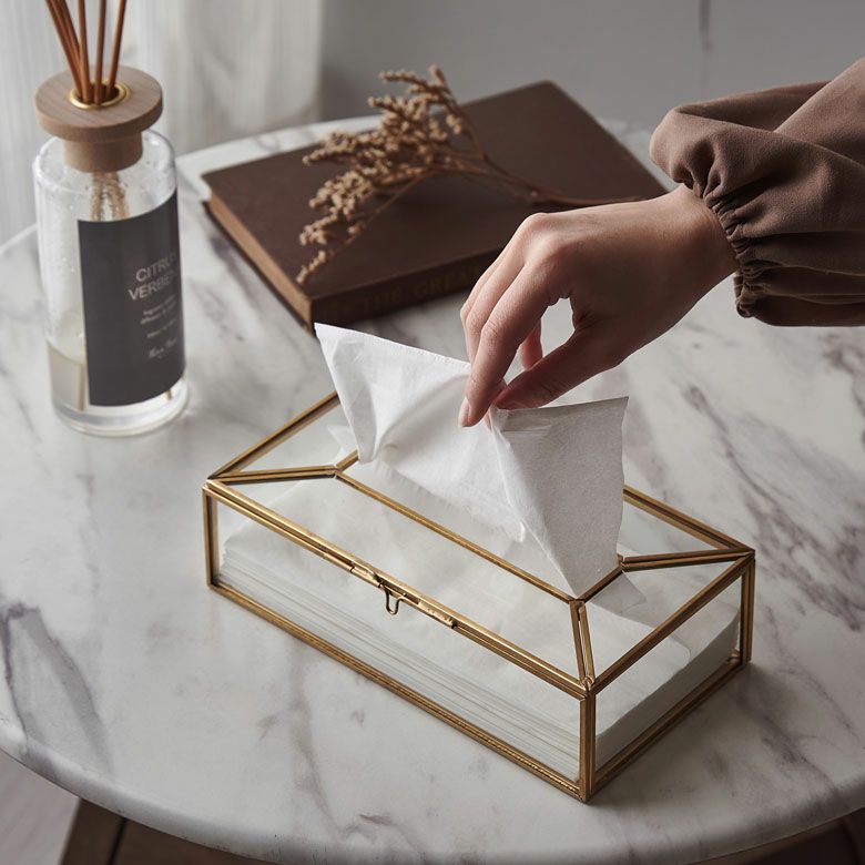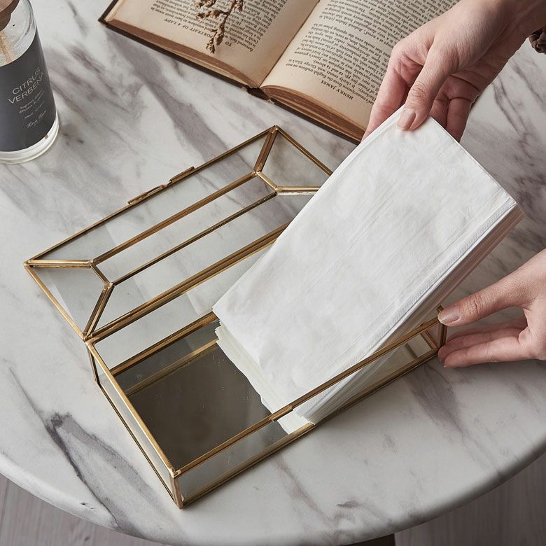 ![]() ガラスと真鍮の 仕切りつきティッシュケース |