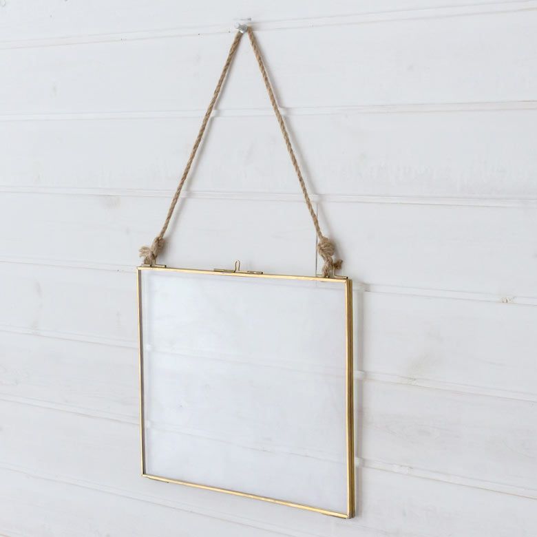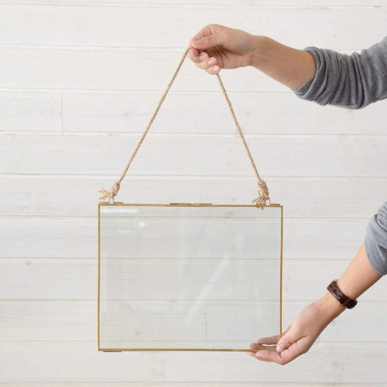 真鍮のフレームとガラスでできたハンギングタイプのフォトフレーム。