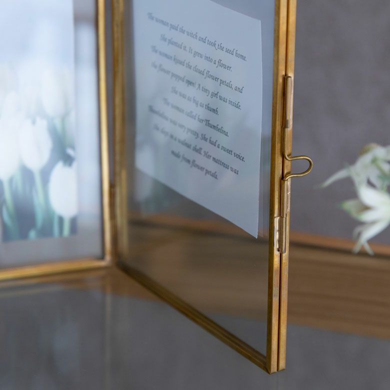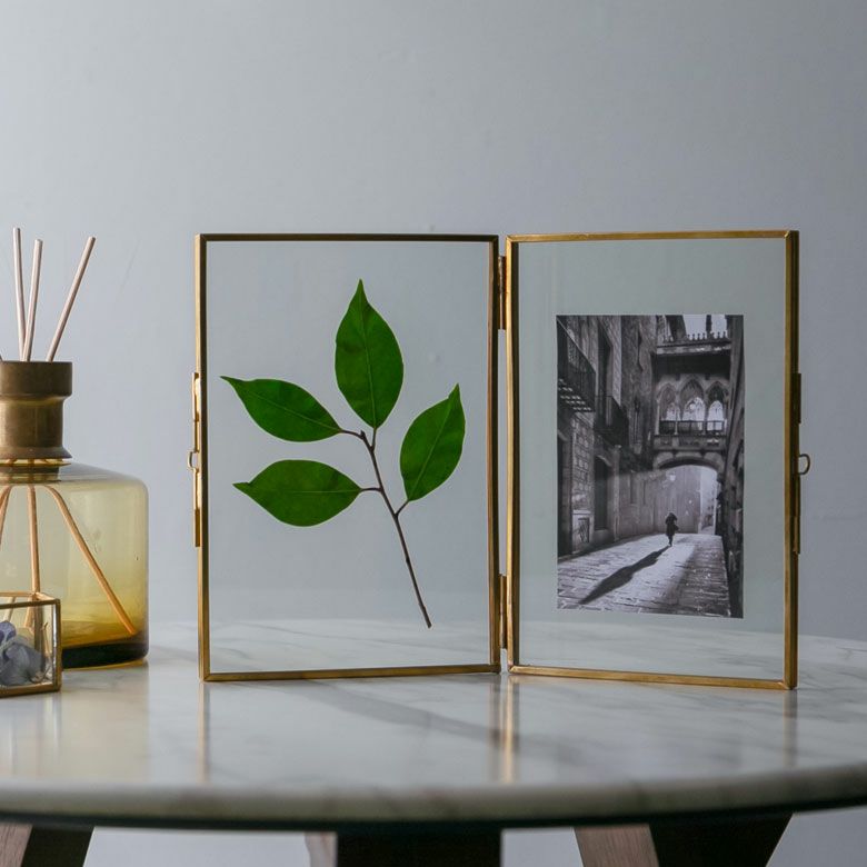 両側に写真を飾れる2面式。折り畳み可能。
