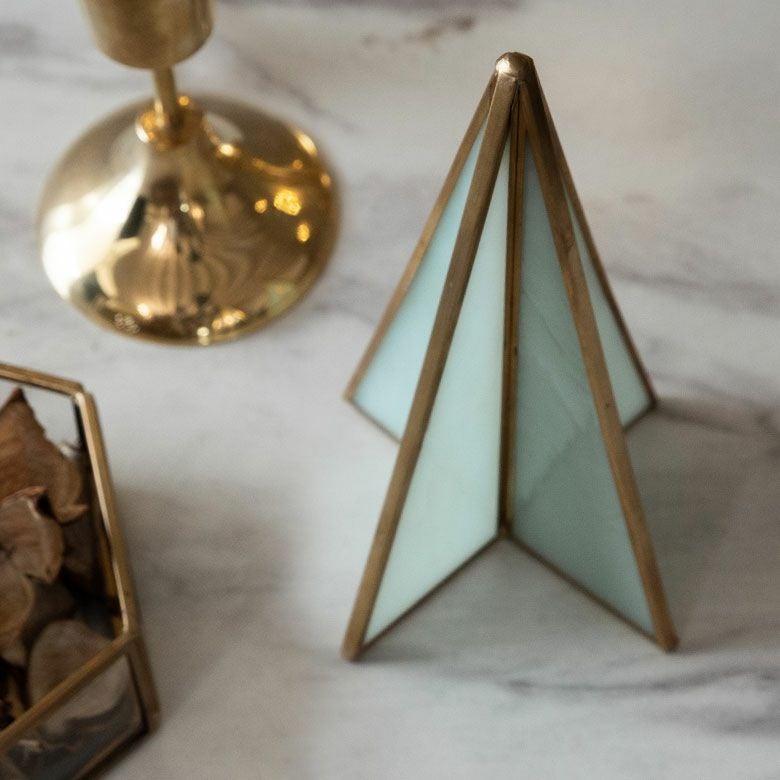 落ち着いたゴールドの真鍮フレームと、ガラスでできた