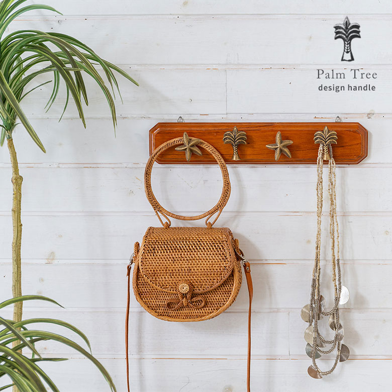 南国リゾートの雰囲気漂う、パームツリーデザインの真鍮ハンドル。
