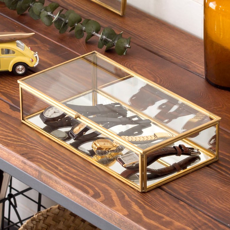 落ち着いたゴールドの真鍮フレームとガラスでできた