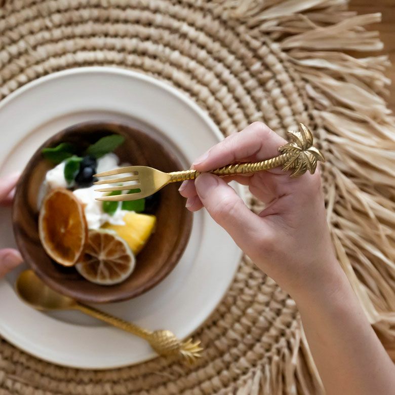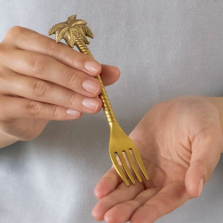 南国リゾートの雰囲気溢れる、パームツリー(ヤシの木)がモチーフの真鍮製フォークは