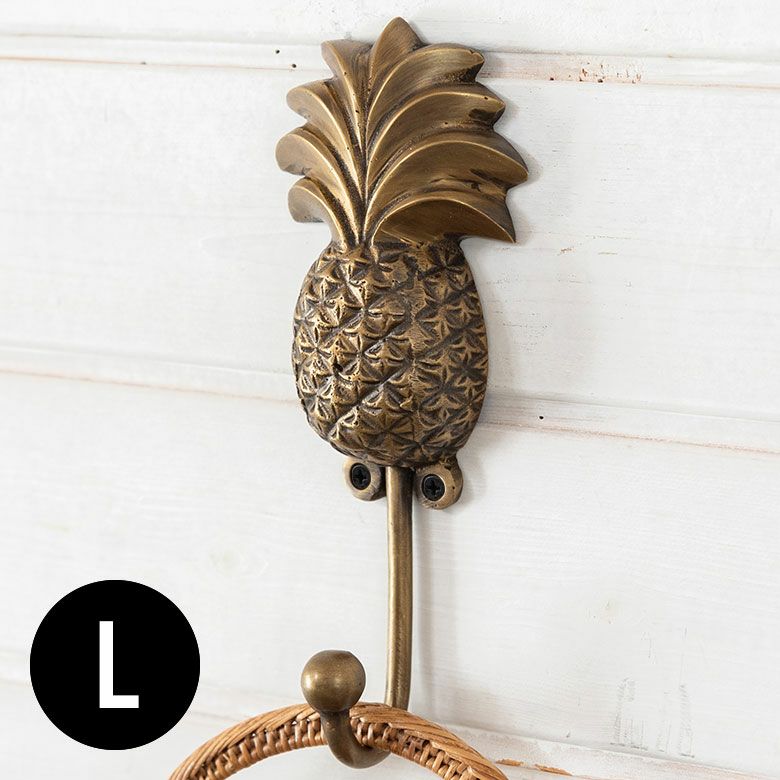 フック 壁掛け 引掛け ひっかけ 壁面フック 壁掛け 引掛け ひっかけ 壁面 DIY 金属 金物 レトロ アンティーク風 おしゃれ インテリア 玄関 カーテン 棚 ラック キッチン 吊り下げ ハンガー 帽子 ストール フック パイナップル型 Lサイズ 縦約20cm アンティーク風 真鍮製 木ネジ付 [13746]【 壁掛けフック 壁フック ウォールフック シングルフック パイナップル ブロンズ アイアン 洗面所 トイレ ドア 壁掛け収納 アジアン 雑貨 アジアン雑貨 南国リゾート ハワイ バリ島 】