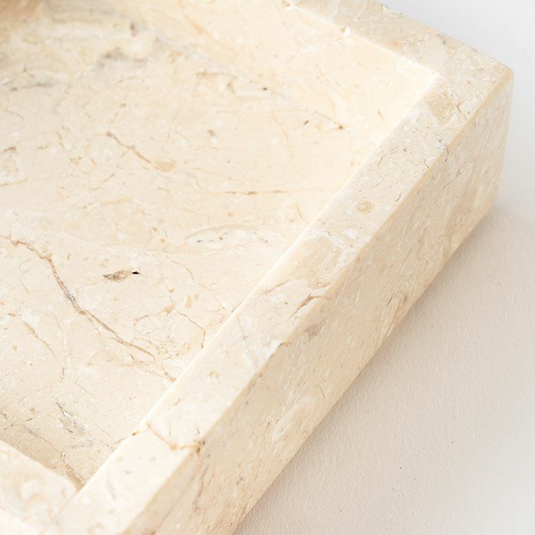 モダンなスクエア型で、インテリアにも馴染みやすいフォルムも魅力。天然大理石の素材そのものの魅力が引き立つ洗練された小物入れトレイは、ワンランク上のアジアンリゾートのような雰囲気を演出します。