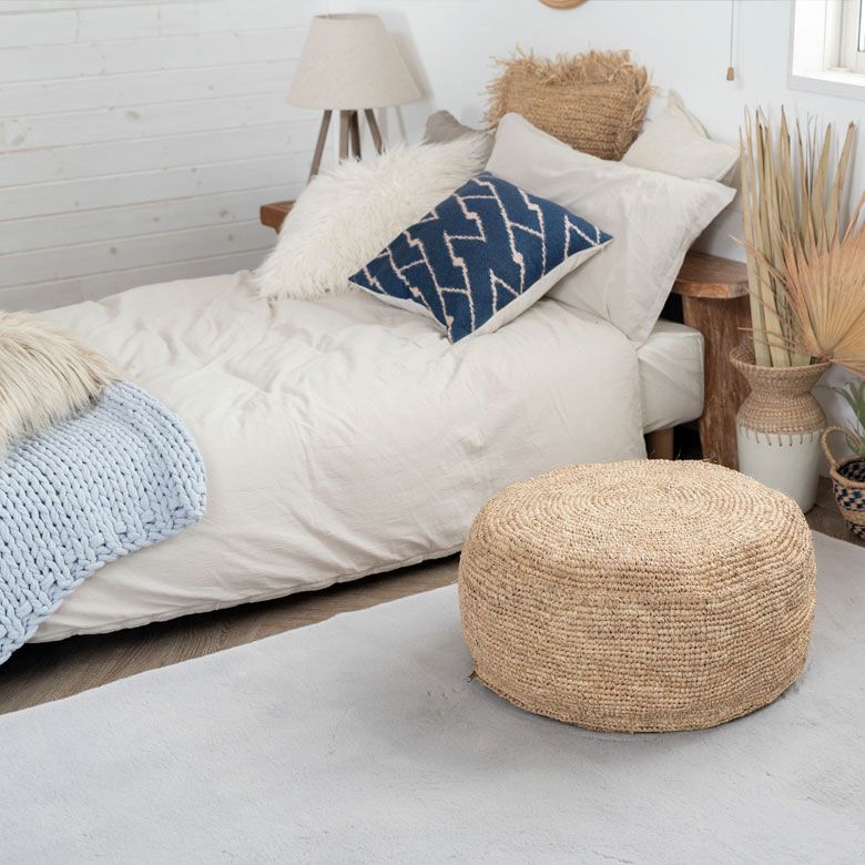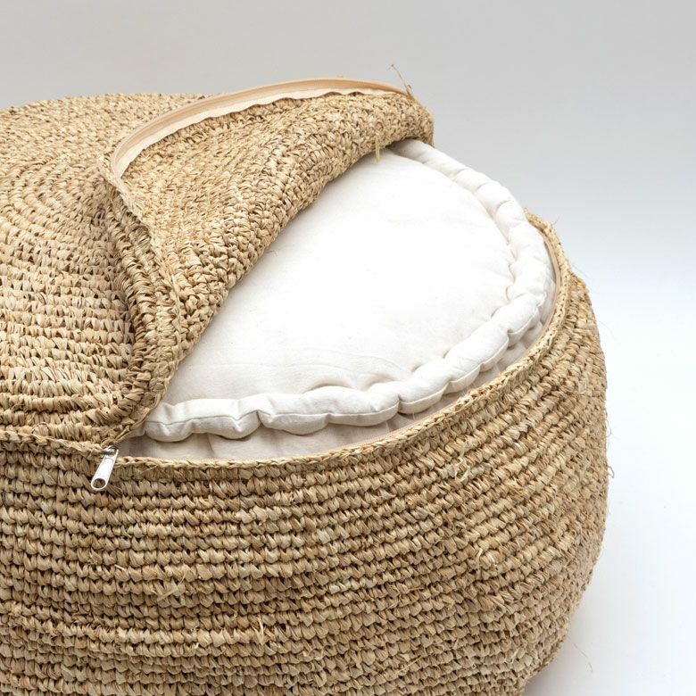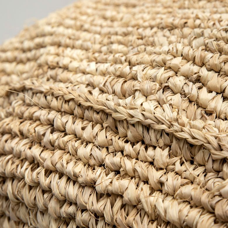 ラフィア椰子の葉から採れる天然繊維のラフィアは、高級素材として世界中でバッグや帽子にも使用されている素材です。自然素材ならではの温もりと、軽やかで丈夫な点が魅力。自然の美しさと実用性を兼ね備えており、その独特の魅力を生活にプラスすることで、エコでおしゃれなライフスタイルをお楽しみいただけます。