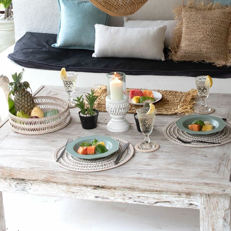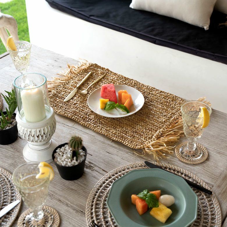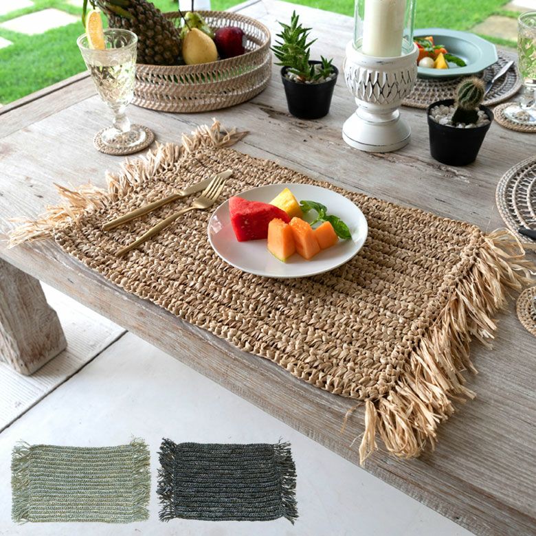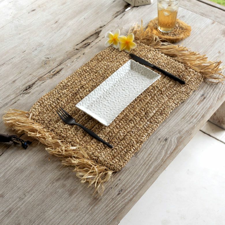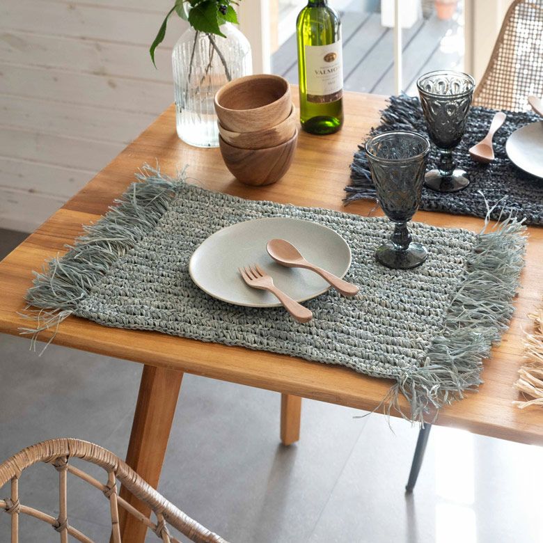 ナチュラルなラフィアを丁寧に編みあげたランチョンマットは、