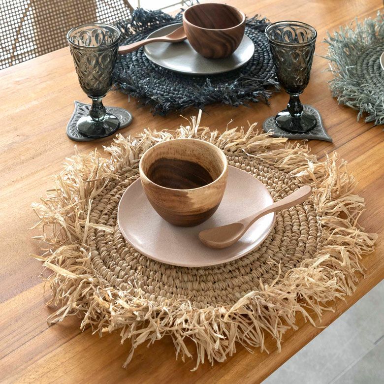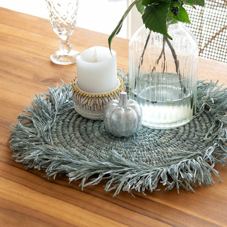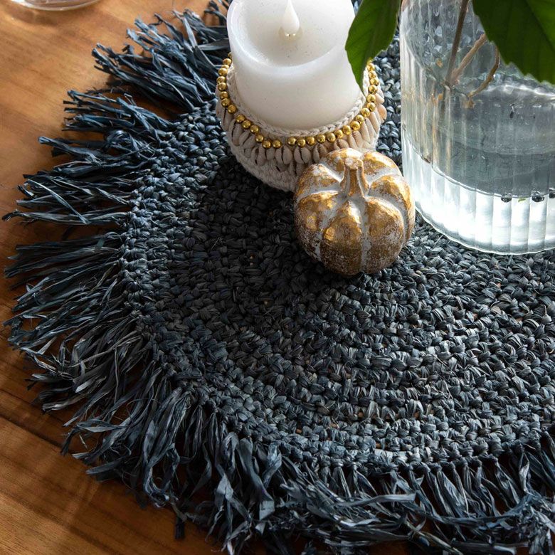 ナチュラルなラフィアを丁寧に編みあげたランチョンマットは、