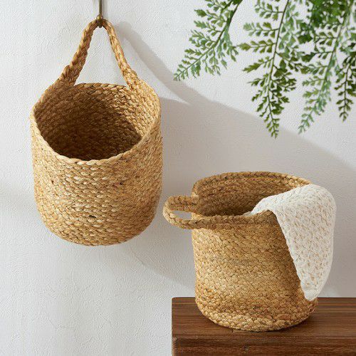 ジュート100%で織られた、ナチュラルな風合いを楽しめる壁掛けバスケット。