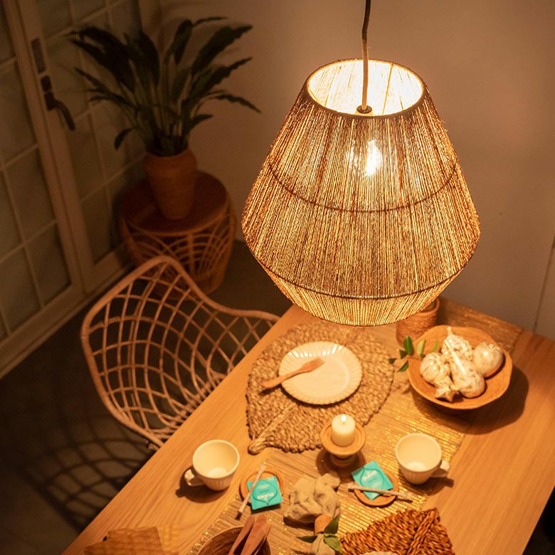ビーチインテリア Boho シェードランプ カフェ風 アジアン家具 ペンダントライト ランプシェード ジュート 麻 1灯 口金E26 60W LED対応 約 径 40cm 高さ 36cm [51276]【 天井照明 インテリア 照明 ランプ シェード ライト ペンダント照明 照明器具 吊り下げ 和モダン おしゃれ リゾート ナチュラル アジアン 雑貨 バリ島 】