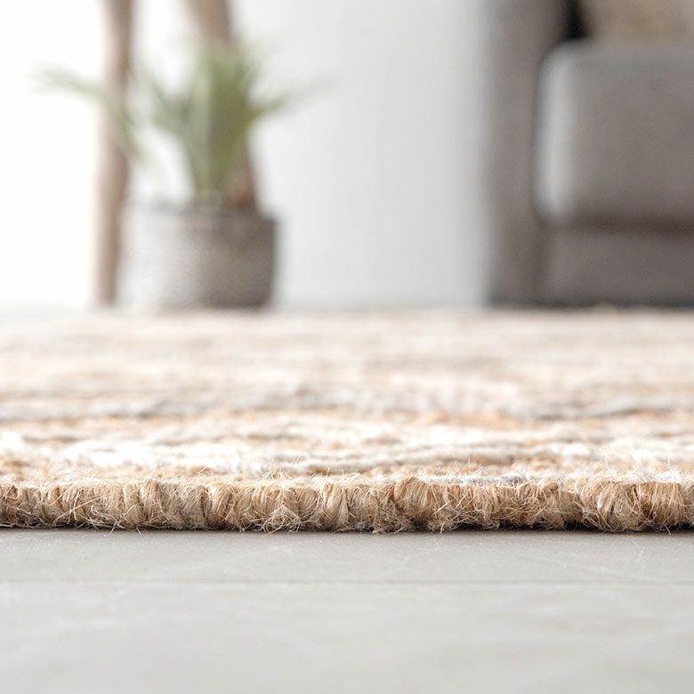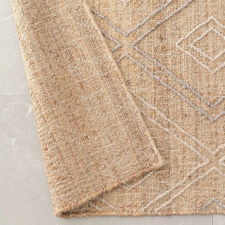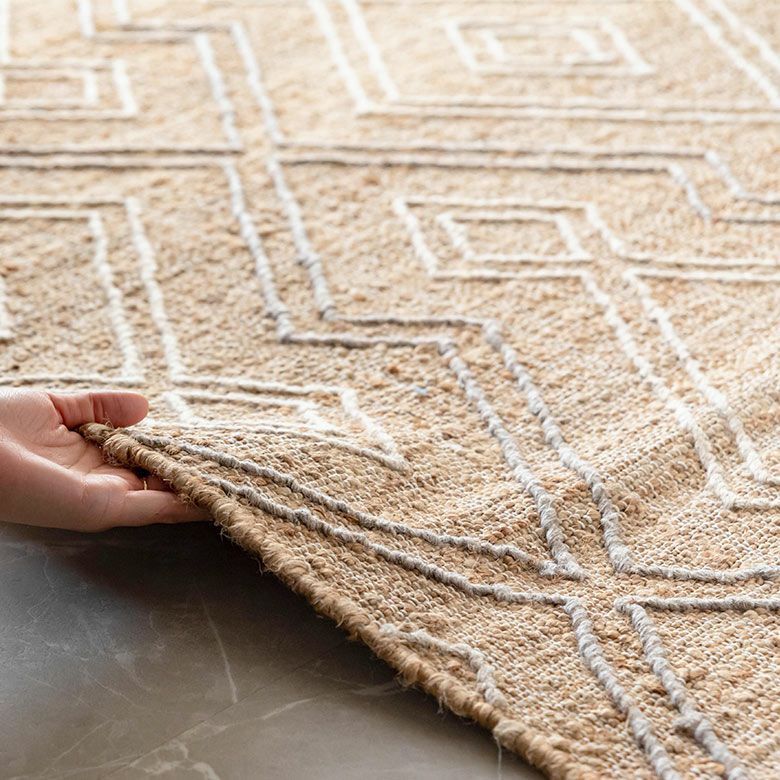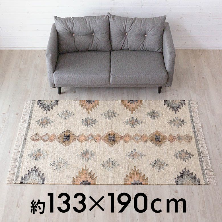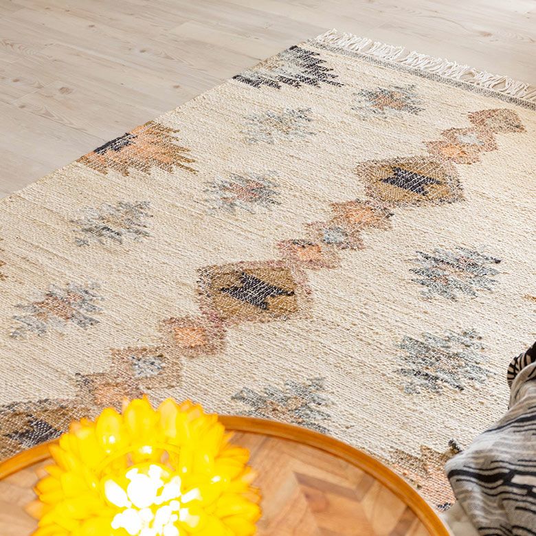 手織り リビング インド BOHO ボーホー 絨毯 敷物 マット ラグ ラグマット 約 130×190 cm 長方形 ジュート 麻 ウール 羊毛 ナチュラル [34446-nt]【 raha ラーハ デザイン カーペット 天然素材 ハンドメイド おしゃれ 北欧 オールシーズン 春 夏 秋 冬 リゾート ヴィンテージ風 幾何学模様 アジアン エスニック バリ 】