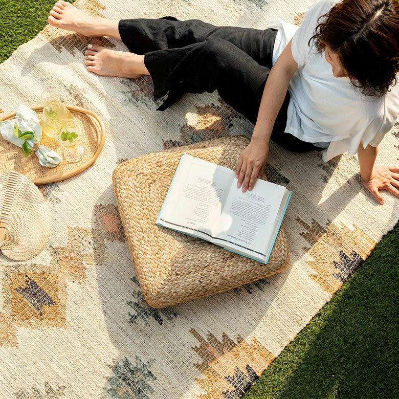 ジュートラグ 140×200cm Raha ジュート・コットンラグ 約133×190cm プフ型ジュートスツール