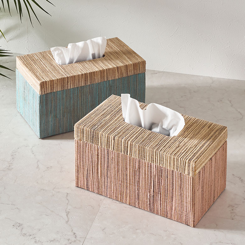 選べる天然素材と、豊富なサイズ展開であなたのお好みにぴったりフィットするティッシュケース新登場! フタとボディに段差がないフラットデザイン【FLATTY FITシリーズ】ウォーターヒヤシンスのアジアンティッシュケース ハーフサイズ[14076]