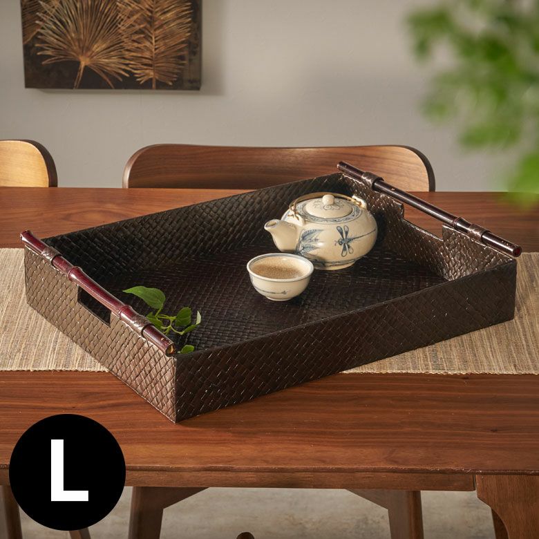 トレイ おぼん 収納トレー サービストレー アジアン雑貨 バリ ハワイ リゾート おしゃれ 店舗用 スパ サロン キッチン雑貨 引っ越し 結婚 誕生日 祝い ギフト プレゼント トレイ サービストレイ お盆トレイ パンダンで編まれたバンブーハンドル付きトレイ 約 W 49.5cm D 38cm H 10.5cm パンダン 竹 収納トレー 持ち手付き サービストレー キッチントレー バリ バリ雑貨 ハワイ アジアン雑貨 アジアン 雑貨 [10464]