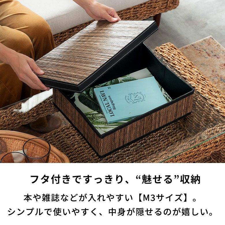 収納 A4 雑誌 本 小物入れ インナーボックス リビング リビング収納 クローゼット 寝室 押し入れ 衣類 折り畳み 折畳み ホテルライク リゾートホテル プレゼント ギフト お祝い 収納ボックス パームリディ フタ付き 折りたたみ 約 W 29 × D 36.5 × H 11 cm M3 天然素材 フェイクレザー 収納ケース 整理ケース モジュール かご カゴ バスケット 収納箱 ボックス ケース ふた付き 蓋付き おしゃれ リゾート バリ アジアン雑貨 アジアン 雑貨 [11374]