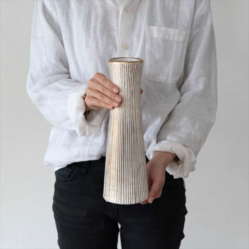 花瓶 ベース 高め 一輪挿し 造花 ドライフラワー 一輪 円柱 フラワーベース セラミック ホワイト ゴールド 高さ31cm [90018-gd 90018-wh]【 花びん 花器 陶器 花瓶 白 金 マット 高い 玄関 ダイニング リビング 置物 おしゃれ インテリア モダン シンプル】