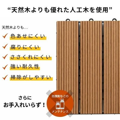 プラスチックを多く含んでいるので腐らず、天然木と比較して色褪せも少ないので長くお使いいただけます。