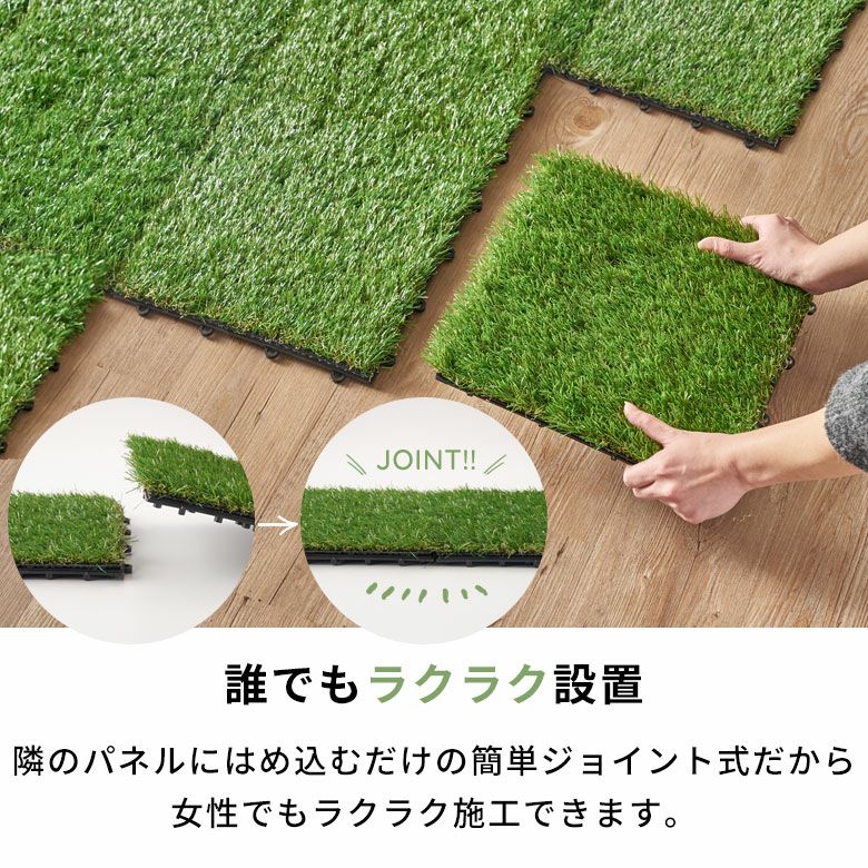 ※人工芝タイルはジョイントの組み合わせ方により毛の流れが変わるため、多少色味に変化がございます。