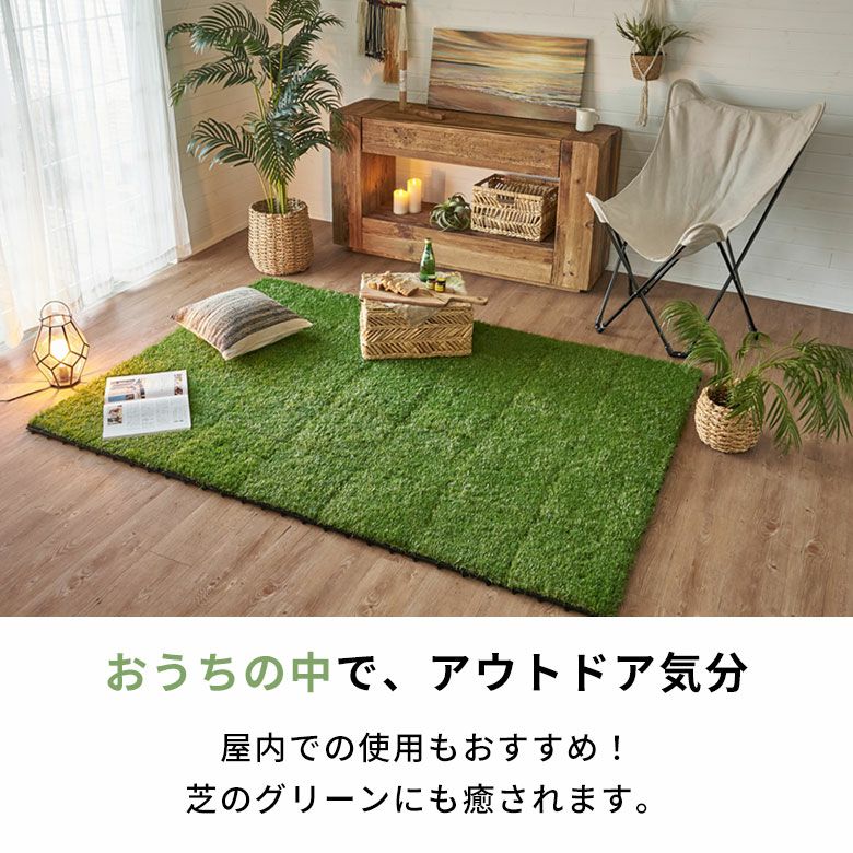 おうちの中でアウトドア気分を味わえ、芝のグリーンにも癒されます。