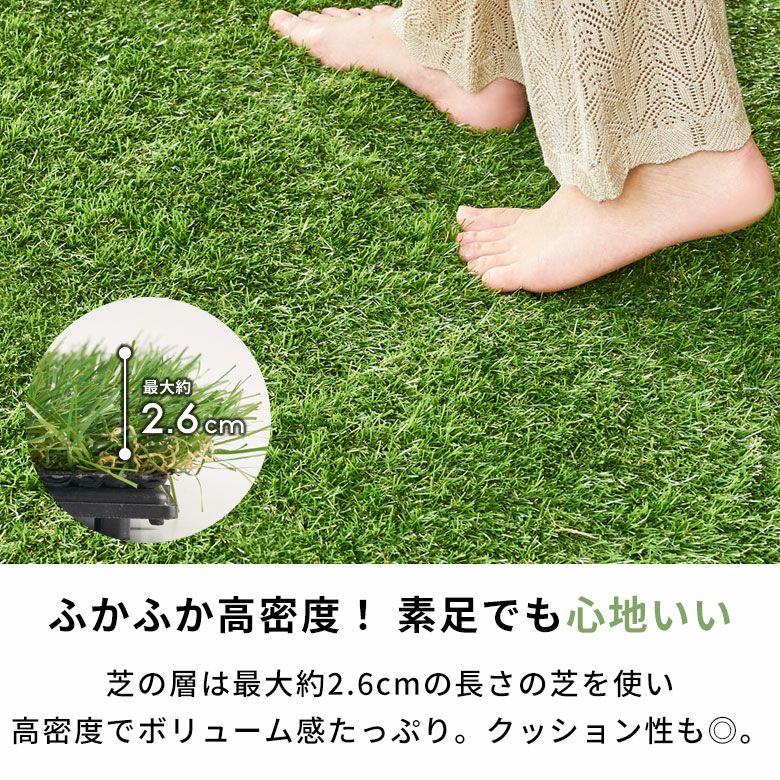 芝の層は最大約2.6cmの長さの芝を使用しており