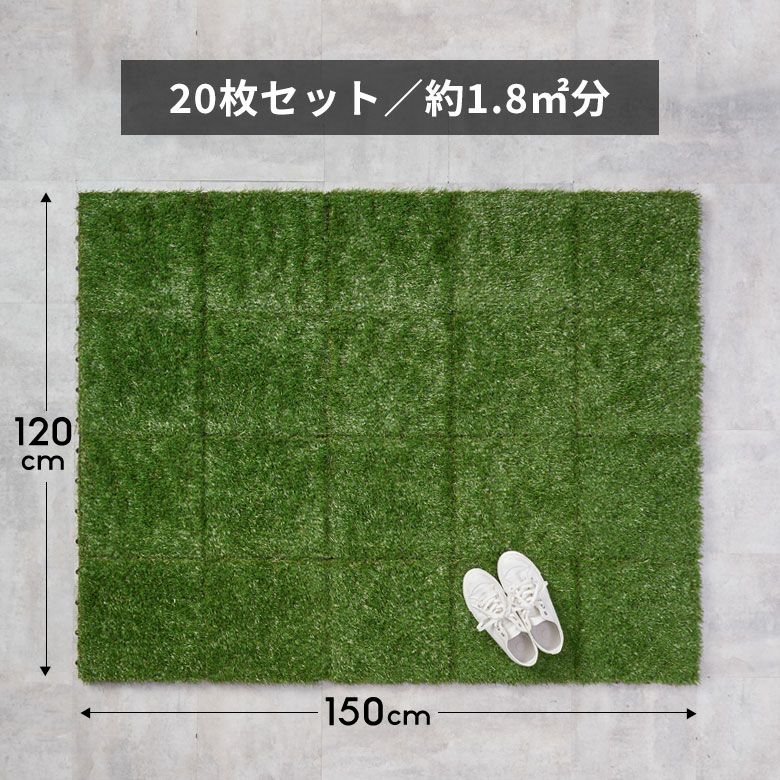 そのまま並べるだけで、オシャレな人工芝タイルですが