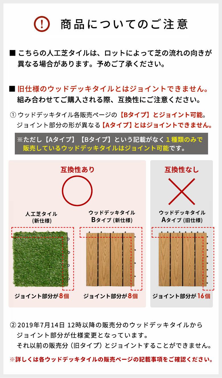 ※ウッドデッキタイルとの互換性は、各販売ページの詳細をご確認ください。