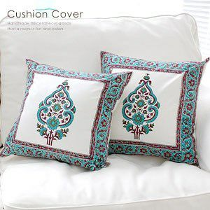 イスラム柄のオリエンタルなプリントのクッションカバーは、コットン100%のホワイト