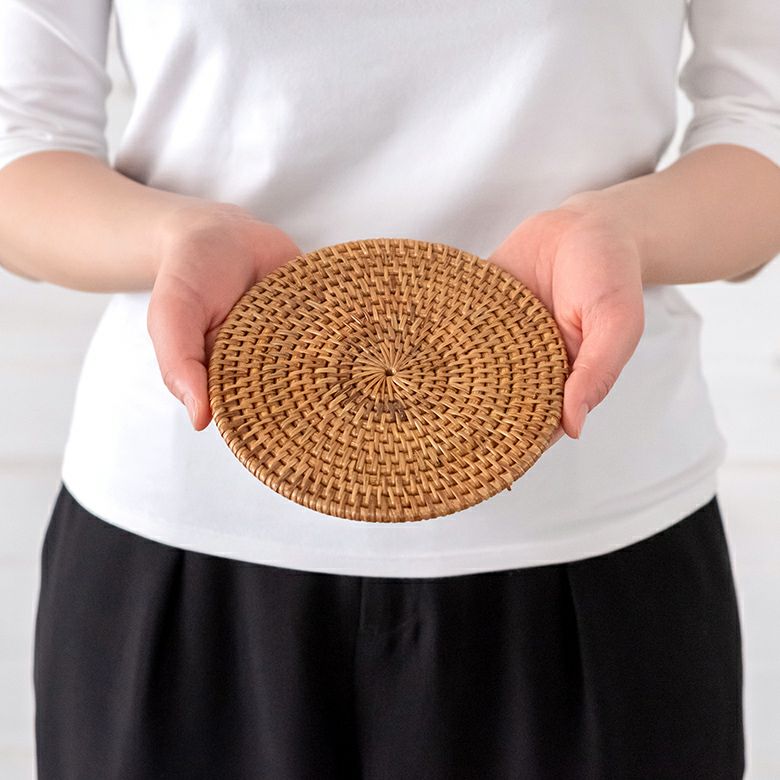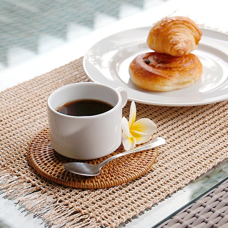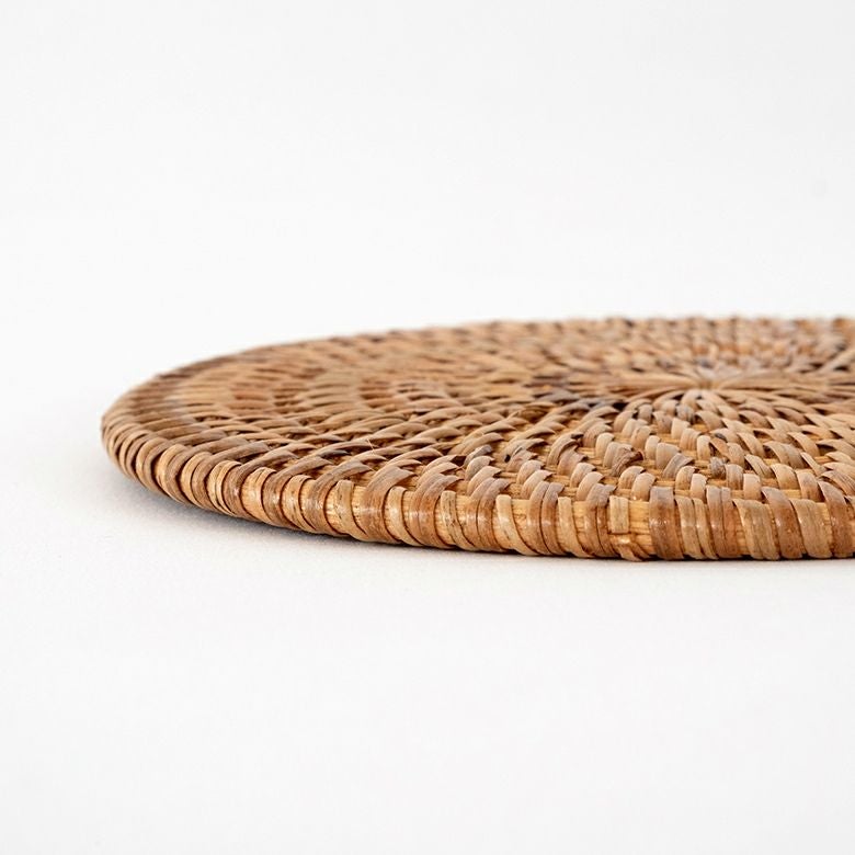 ナチュラルテイストたっぷりのラタンで編まれた小さなランチョンマット。