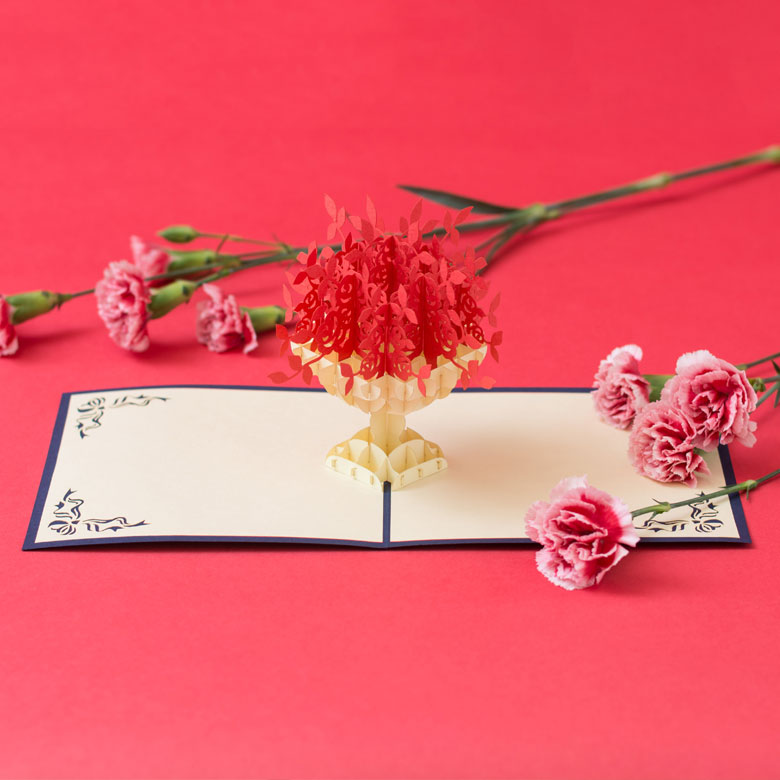 カードを開けると立体的に飛び出すポップアップ式。年齢を問わず喜んでもらえるカードです。 |