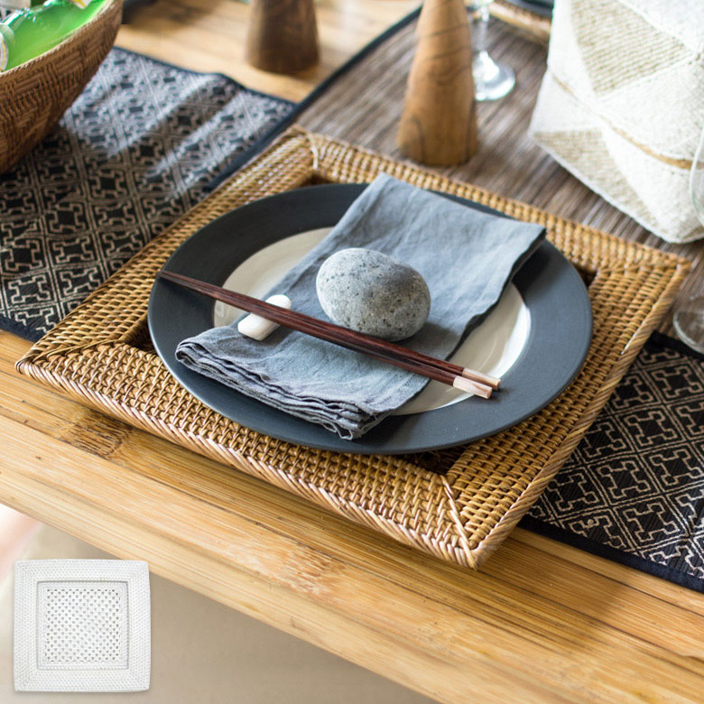 他のアタやラタン商品と組み合わせることで、アジアンリゾート感たっぷりの華やかなテーブルに。