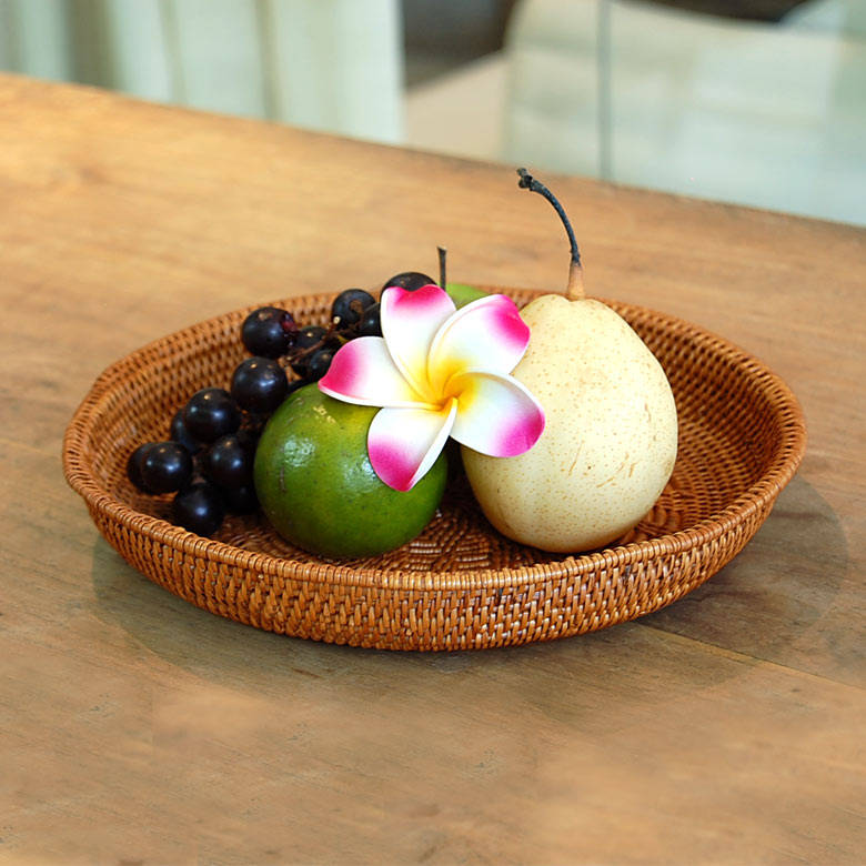 アタで編まれた円形トレイ型バスケット |