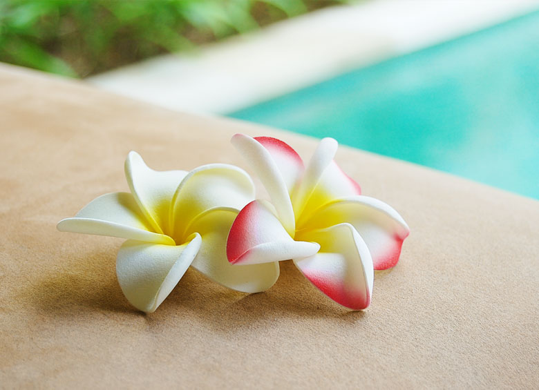 ホテルやスパに行くとテーブルやベッドなど、いたるところで見かけるお花です。