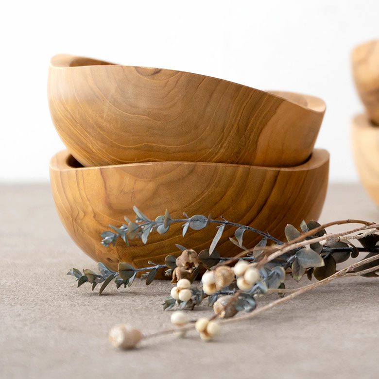塗装をしていないナチュラルな質感で、あたたかみを感じるウッドボウル。