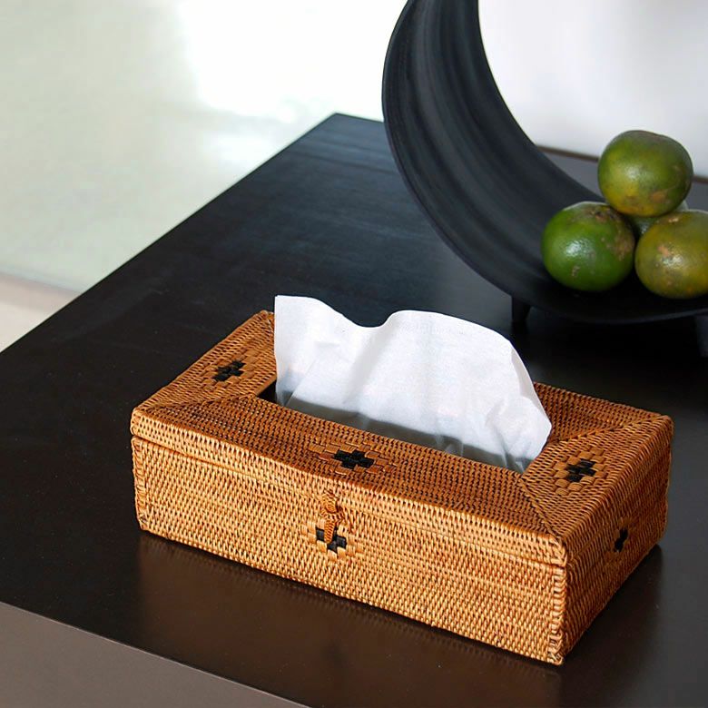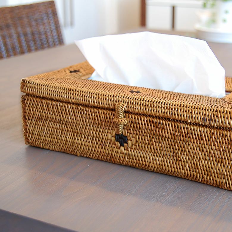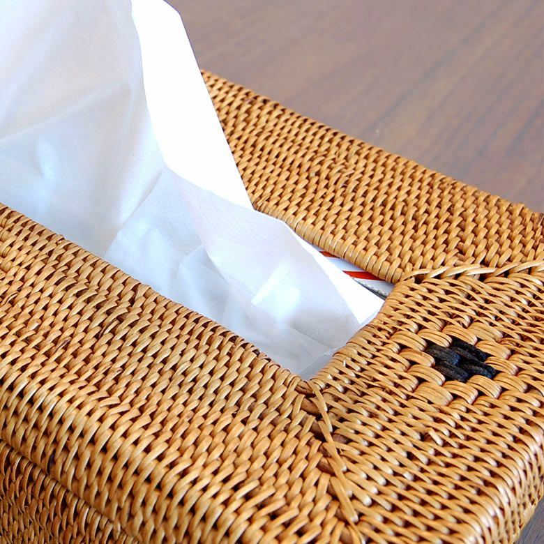 アタで編まれたティッシュケースは