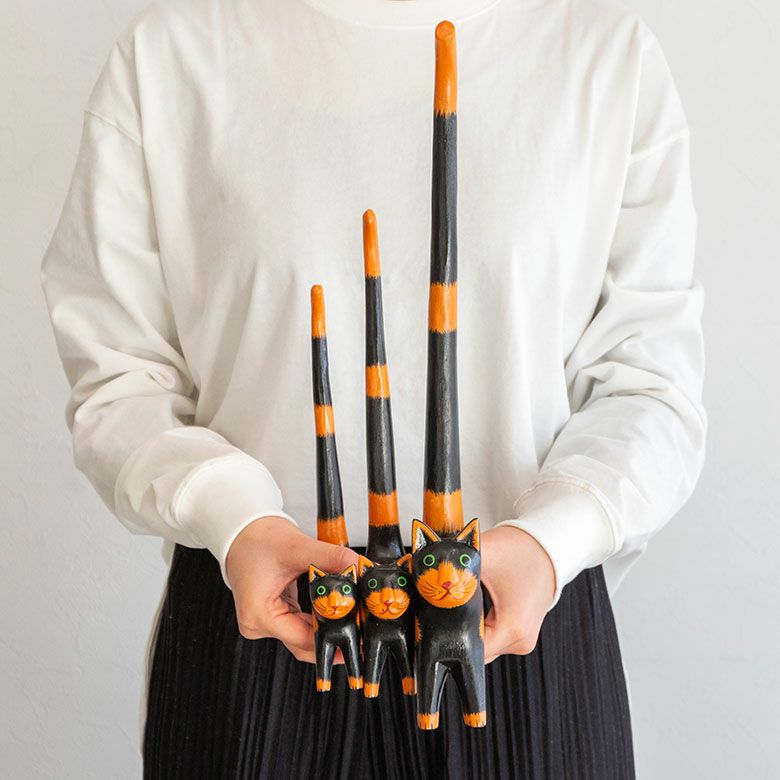 しっぽのながい木彫りバリネコ[ 3匹セット ]