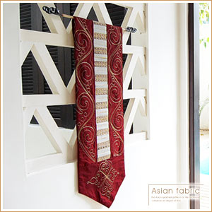 ダマスク柄のテーブルランナーや刺繍のタペストリーが大人のアジアンリビングを惹きたててくれます。