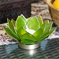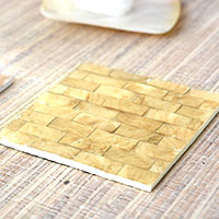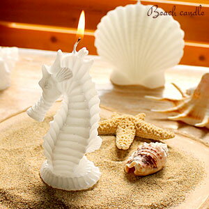 ガラスやシェルアイテム、ホワイトキャンドルなどの小物でまとめて、爽やかビーチスタイルが完成。