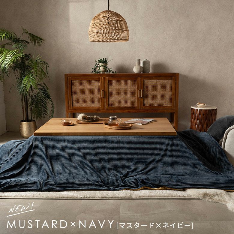 当店ロングセラーのコーデュロイこたつ布団シリーズに、新しい配色の「マスタード×ネイビー」と「グレー×ミントグリーン」が登場!