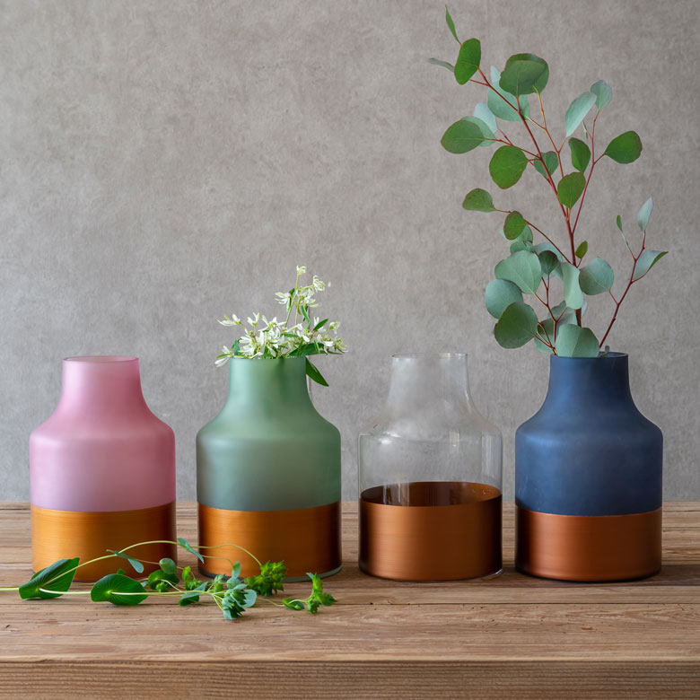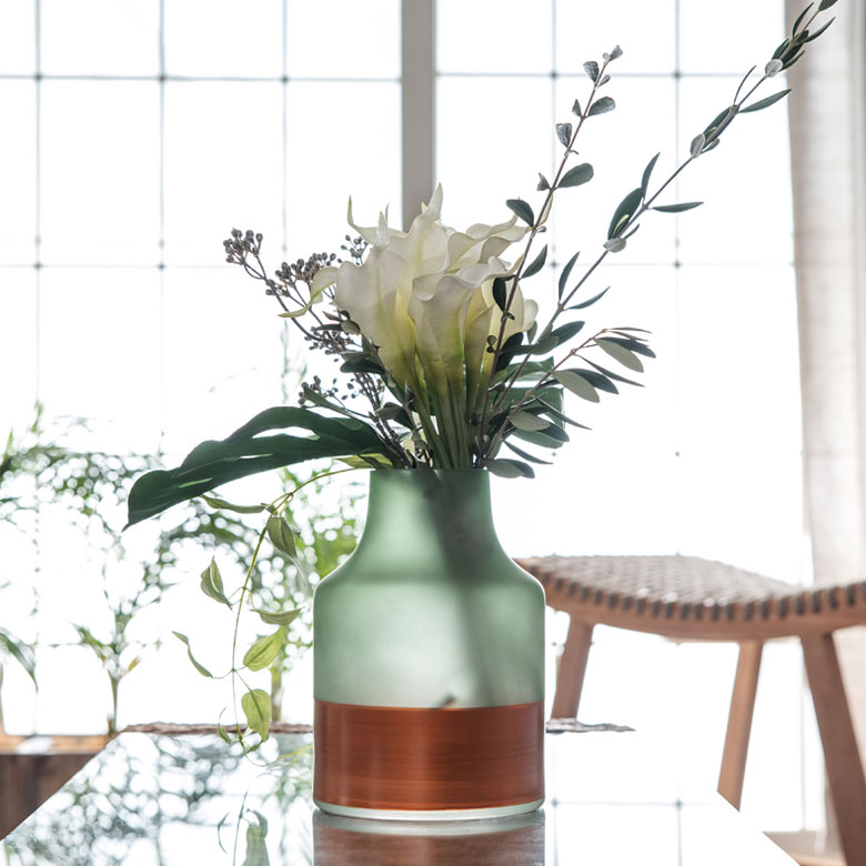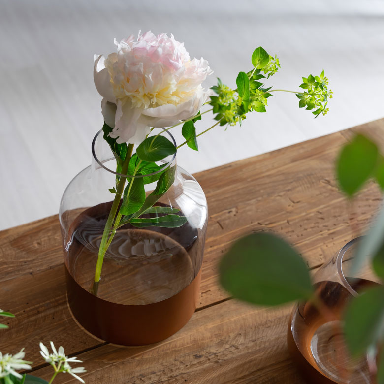 シンプルに一輪花やグリーンを入れるだけで絵になるフラワーベース。