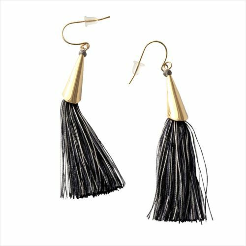 数種類のカラーをミックスしたフリンジとゴールドの金具が相性抜群。
