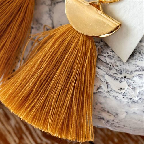 上品なゴールドの金具と、大人っぽいスモーキーカラーのタッセルの組み合わせ。