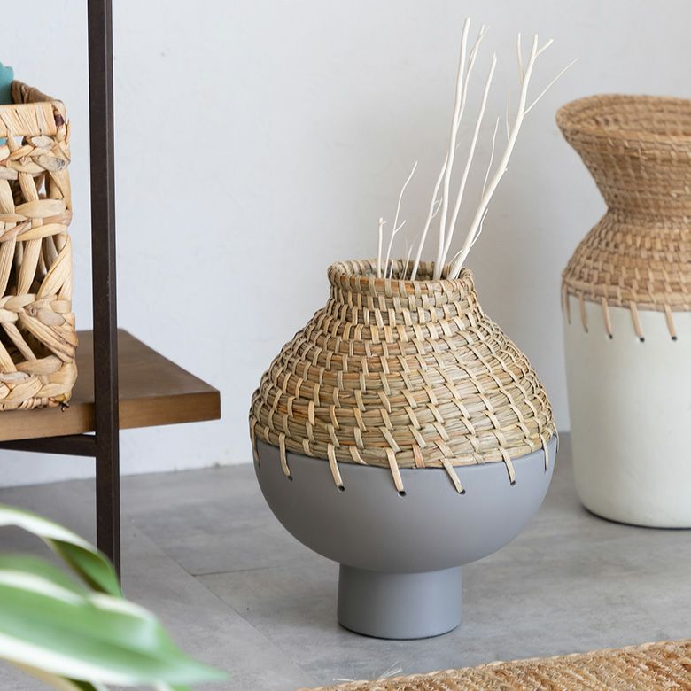 花瓶 花器 花入れ 造花 フラワーポット リゾートインテリア フラワーベース テラコッタ製 ※水入れ不可 シーグラス編み込みデザイン グレー×ナチュラル 高さ約27cm [13722]【 花瓶 花びん 花器 丸形 ドライフラワー アートプランツ フェイクグリーン オブジェ デコレーション 置物 おしゃれ アジアン雑貨 】