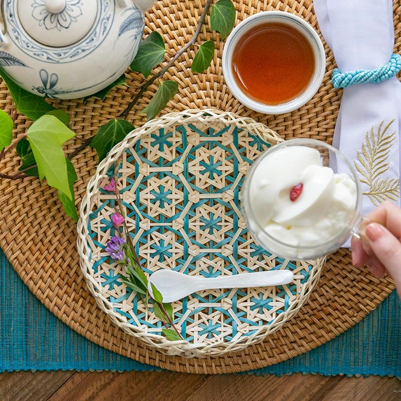 バンブートレイ フードストッカー プレートトレイ 竹細工 トレー トレイ バンブー プレート 直径 約 20cm ブラウン ブラック アイボリー ライトブルー パープル [51310]【 竹 収納 バスケット 花柄 花編み 円 サークル デコレーション パーティー レトロ おしゃれ カラフル ベトナム エスニック アジアン 雑貨 チェーホア Tre hoa 】
