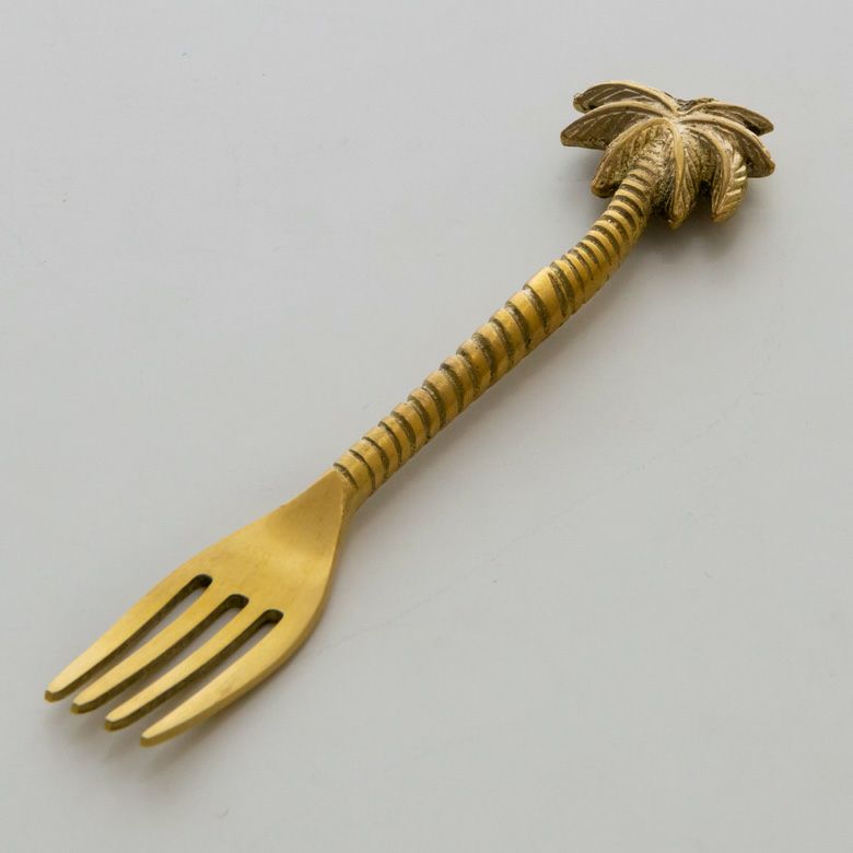 真鍮カトラリー キッチン ダイニング レストラン 店舗 カフェ 【メール便対応】 フォーク 真鍮 カトラリー パイナップル ヤシ パームツリー マット ゴールド 約 W 3cm D 14cm H 1cm [34512]【 リードフリー アンティーク風 ケーキフォーク ケーキ フルーツ デザート スイーツ パーティー 南国 リゾート おしゃれ アジアン 雑貨 】